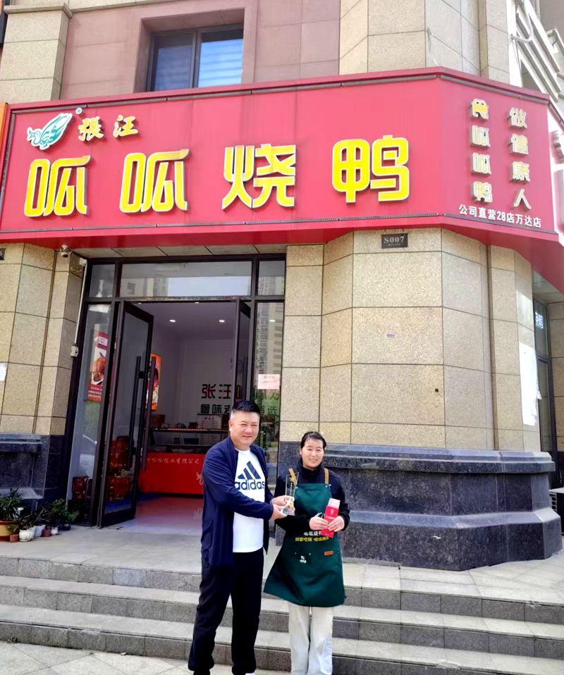 为表彰先进、树立标杆,凝聚团队奋进力量,张汪呱呱烧鸭2026年第一季度优秀门店店长表彰顺利开展。公司董事长、非遗技艺传承人张井科先生,亲自前往各获奖门店,为7位优秀店长逐一颁发荣誉证书、送上鼓励红包,对大家一季度的辛勤付出与亮眼成绩给予充分肯定。